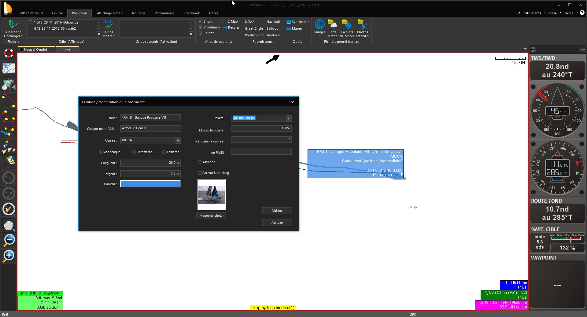 Useful in sailing mode and in route simulation, the video enables to study in details the expected boat progression in weather system, to replay step by step, forward and backwards…